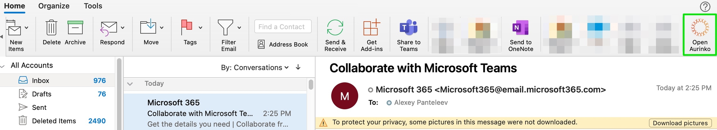 Install your Aurinko Outlook add-in by uploading the auto-generated manifest in Outlook. Open the add-in from the main ribbon to get started.